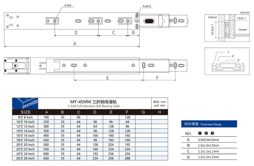Wide-Body Structure: 45mm width provides excellent torsional resistance, preventing drawer tilting.